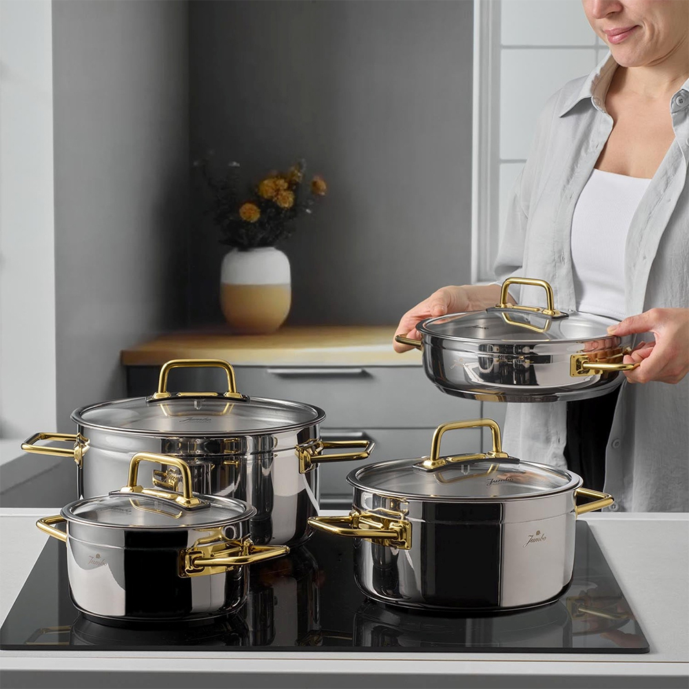 Jumbo ise zamansız tasarım dili ve sofra estetiği ile dikkat çekiyor. Yemek takımlarından çatal kaşık bıçaklara kadar, masada ve mutfakta benzer dili konuşan ilk bakışta fark edilen bir duruş sunuyor.